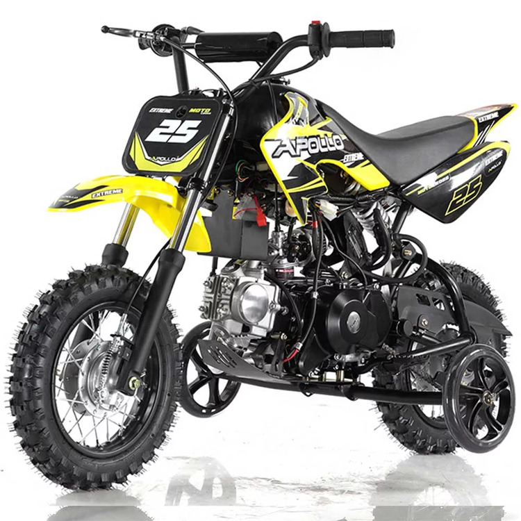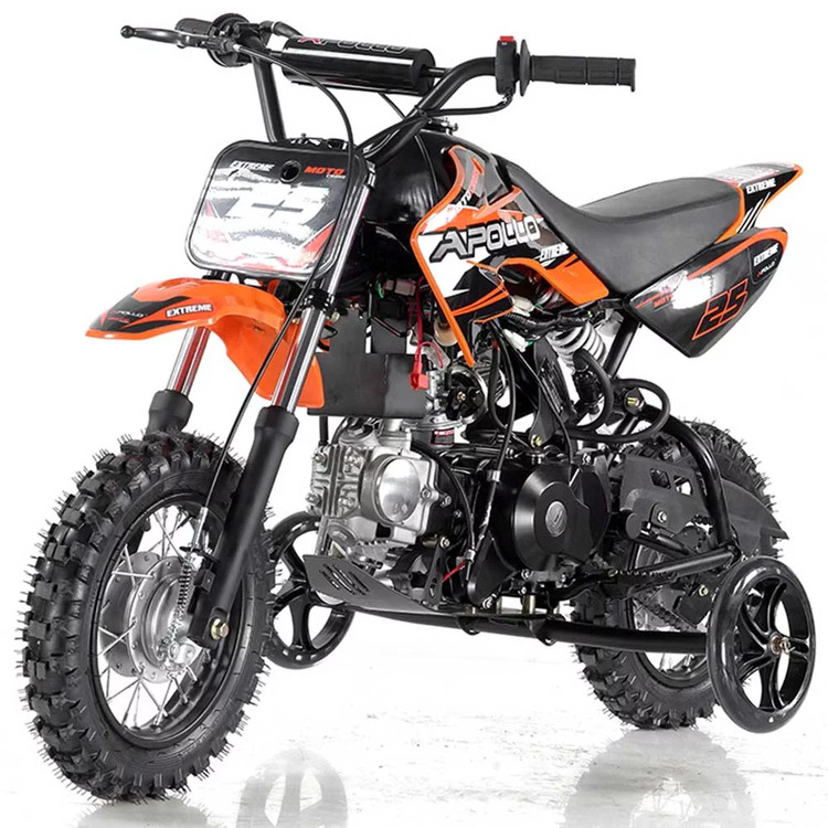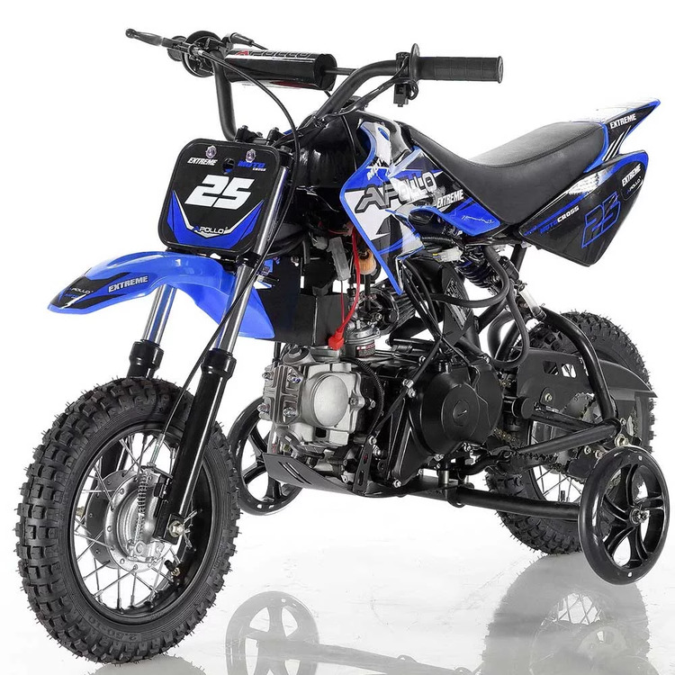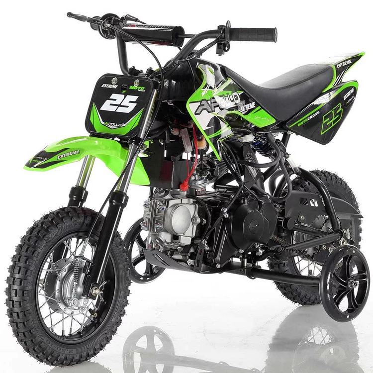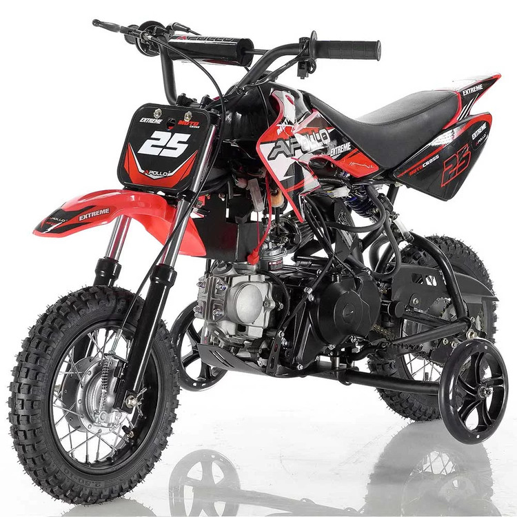 The Apollo DB-25 is smaller dirt bike designed for beginner riders! A low seat height, electric start, fully automatic transmission and even removable training wheels makes for the perfect starter bike. Offering 6 inches of ground clearance supported by full front and rear motorcycle suspension paired with knobby all terrain tires, riders of all experience will appreciate the DB-25! This bike is much like the Honda CRF50 and CRF70, but at a fraction of the cost. Green sticker approved and in many colors to choose from! Call us today or shoot us an email!